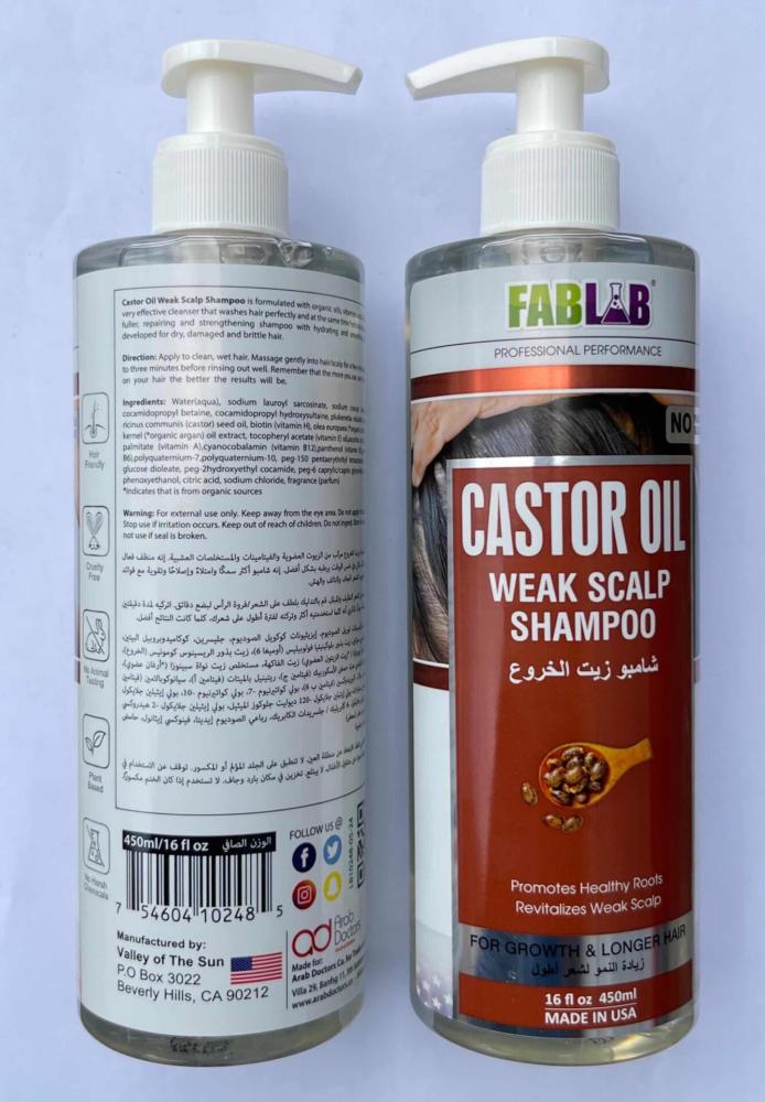 شامبو زيت الخروع من فاب لاب ينشط فروة الرأس ويعزز نمو الشعر بشكل طبيعي.